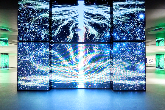 윌로우하우스 입구에 위치한 미디어 월은“버드나무 숲에 부는 바람”의 콘셉트로 유한을 상징하는 버드나무가 뿌리를 내려 작은 묘목에서 꽃을 피우고 새로운 씨앗을 날리는 성장 스토리를 환상적인 그래픽으로 표현합니다.