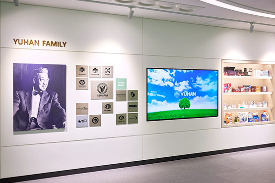 유한패밀리 그룹의 제품 전시 및 소개